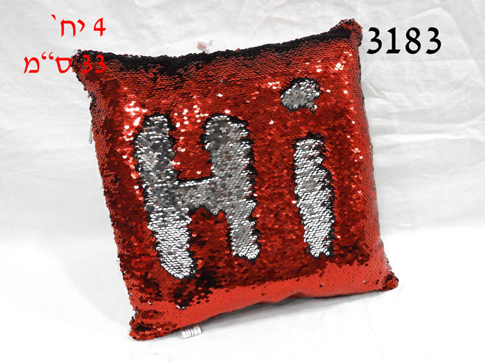 כרית פייטים מרובעת אדום/כסף וסטן 33 ס"מ/4