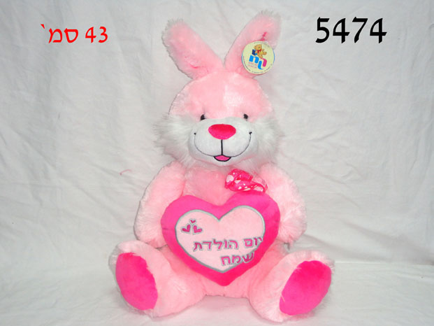 ארנב ורוד+לב ומסגרת יום הולדת 43 ס"מ