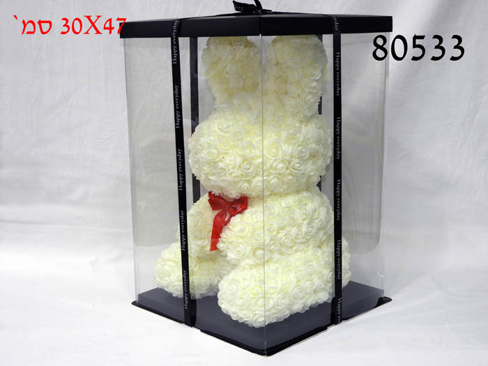 ארנב פרחים קרם גדול+פפיון בק. PVC 30X47 ס"מ