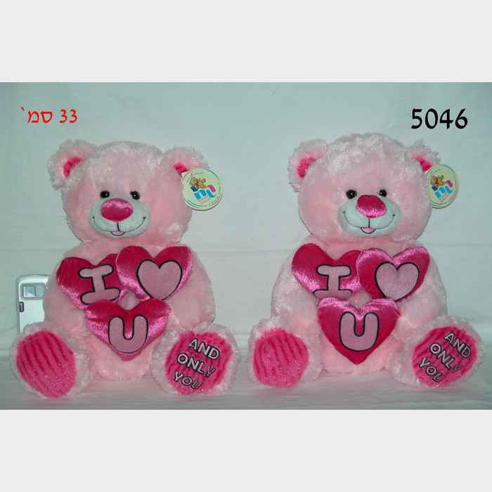 בובה דובי ורוד מחזיק 3 לבבות 33 ס"מ אנגלית