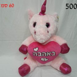 חד קרן ורוד מחזיק לב ורוד באהבה 40 ס"מ