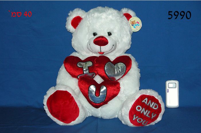 בובה דובי לבן מחזיק 3 לבבות 40 ס"מ אנגלית
