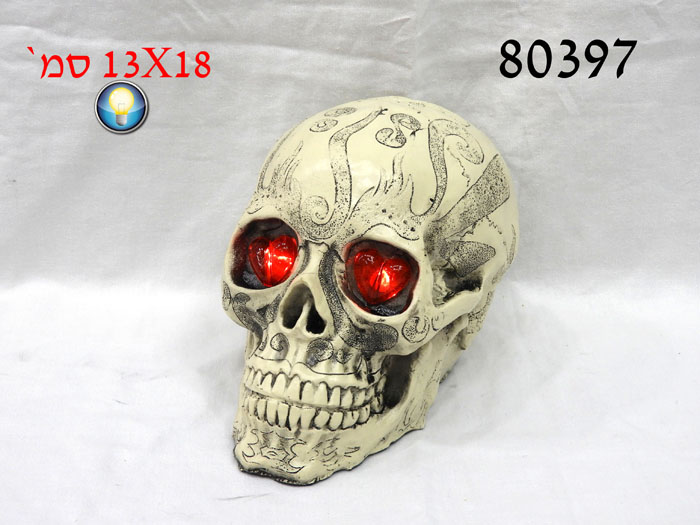 גולגולת מפולי עם עיניים לבבות+אור 13X18 ס"מ