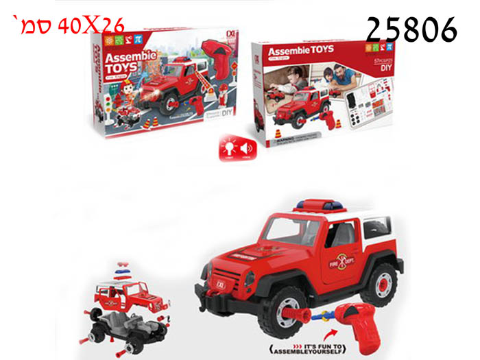 ג'יפ אדום להרכבה+מברגה+אור וקול 57 חלקים 40X26