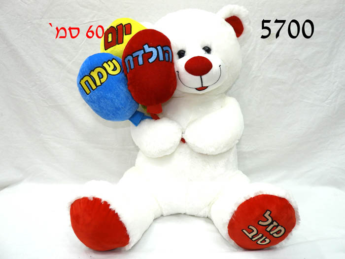 דובי לבן זר בלונים צבעוניים בעברית 60 ס"מ