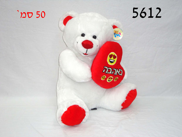 דובי לבן+לב באהבה ברכת לדים ושיר בעברית 40 ס"מ