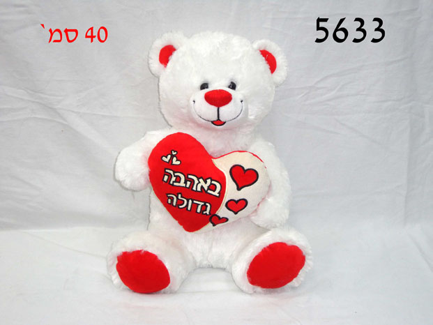 דובי לבן מחזיק לב חצוי אדום וקרם באהבה 40 ס"מ