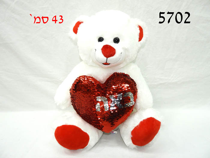 דובי לבן מחזיק לב פייטים נסתר באהבה 43 ס"מ