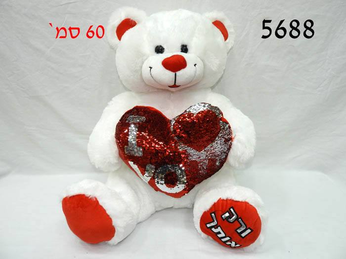 דובי לבן מחזיק לב פייטים I❤U 60 ס"מ