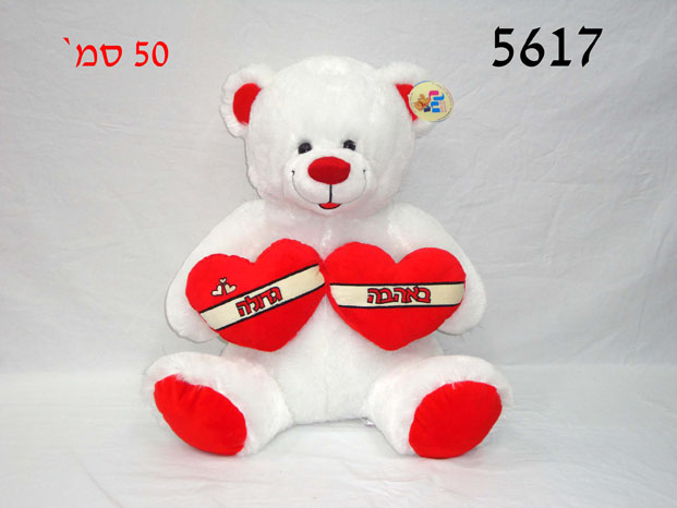 דובי לבן מחזיק 2 לבבות נפוחים באהבה גדולה 50 ס"מ