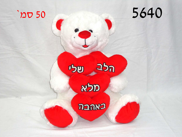 דובי לבן מחזיק 4 לבבות 50 ס"מ בעברית