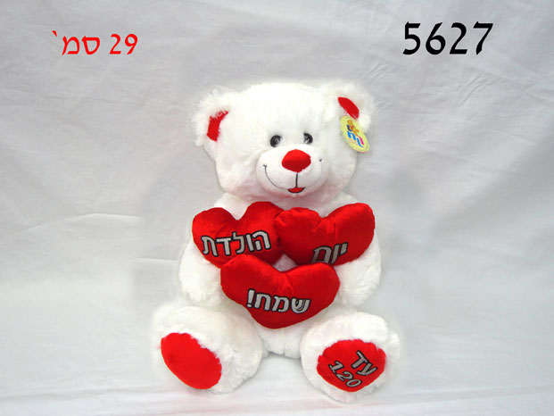 דובי קרם+3 לבבות ברכת לדים ושיר בעברית 50 ס"מ