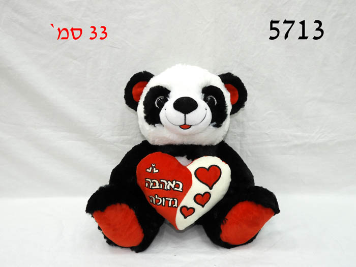 דובי פנדה אדום מחזיק לב באהבה גדולה 33 ס"מ