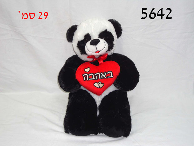 דובי פנדה יושב מחזיק לב באהבה 29 ס"מ