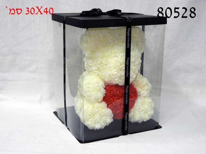 דובי פרחים קרם גדול+לב אדום בק. PVC 30X40 ס"מ