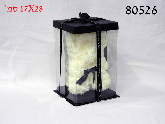 דובי פרחים קרם קטן+פפיון בקופסה PVC 17X28 ס"מ