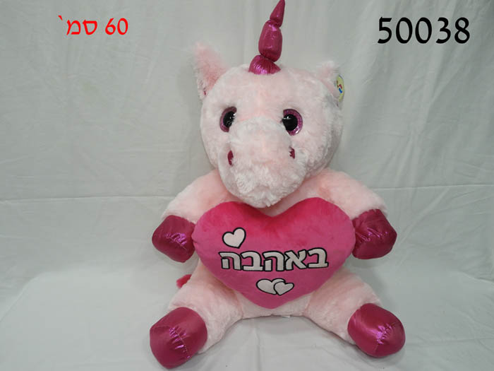חד קרן ורוד מחזיק לב ורוד באהבה 60 ס"מ