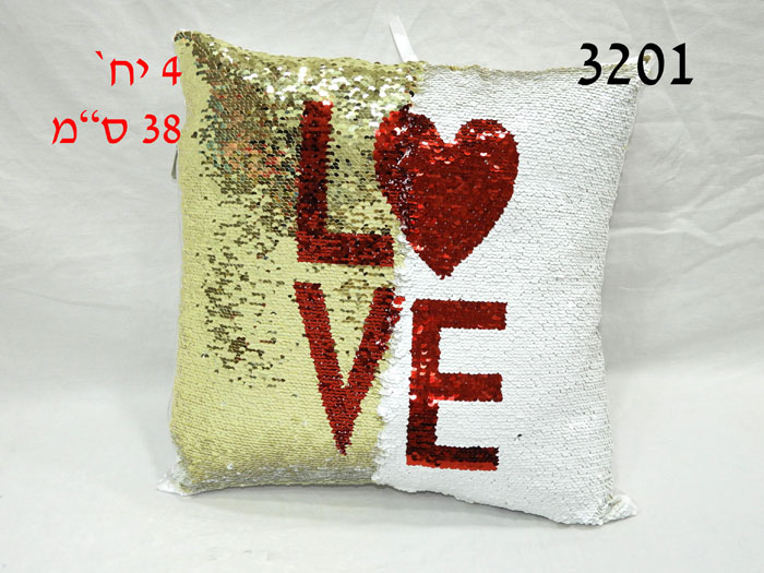 כרית פייטים מרובעת LOVE וסטן 38 ס"מ/4