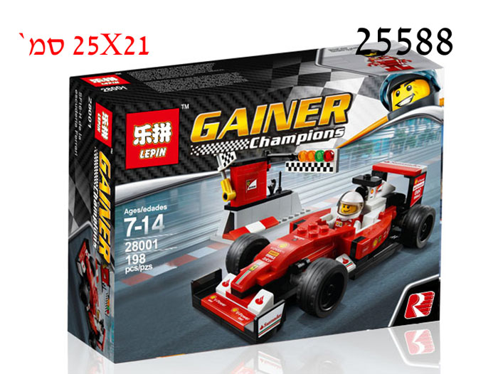 מכונית מירוץ אדומה להרכבה 198 חלקים 25X21 ס"מ