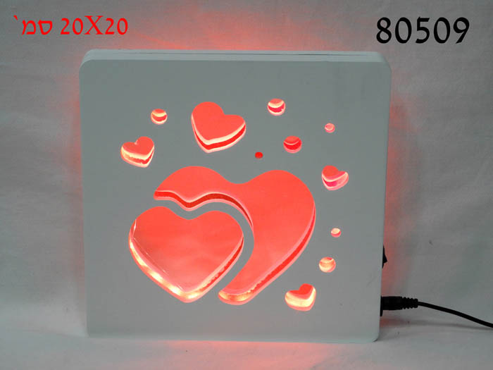 מנורת LED MDF מרובעת דגם לבבות 20X20 ס"מ