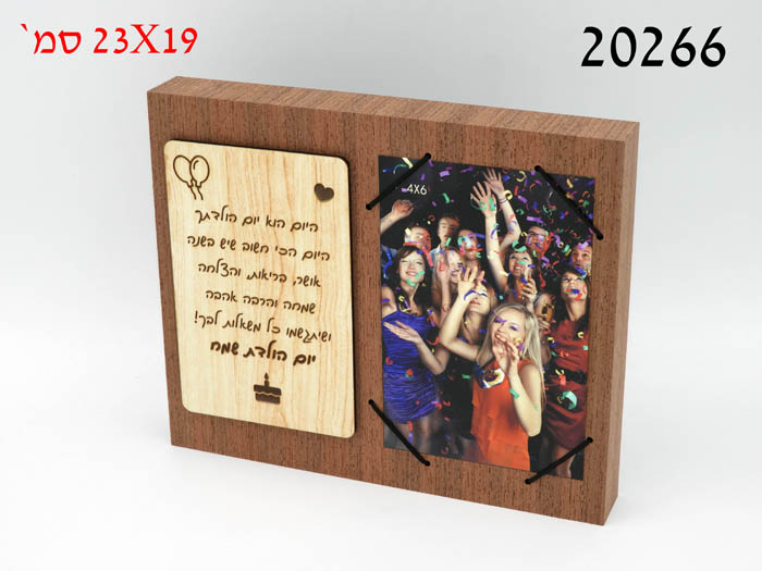 מסגרת חומה לתמונה מעץ+הקדשה יום הולדת שמח 23X19
