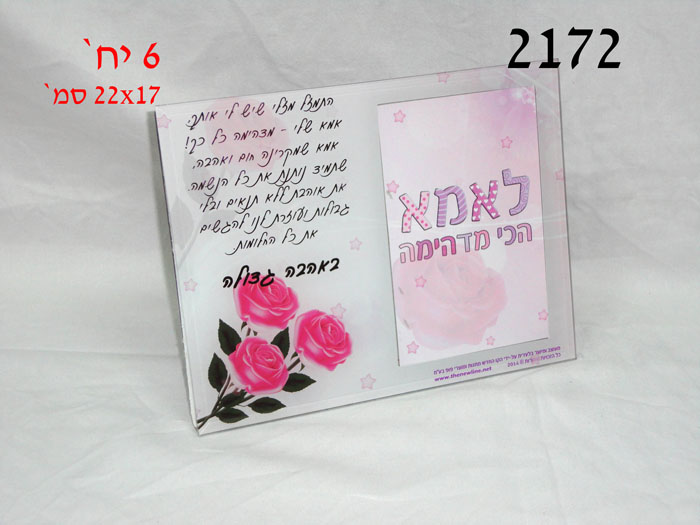 מסגרת לתמונה מזכוכית לאמא+הקדשה 22X17 ס"מ/6