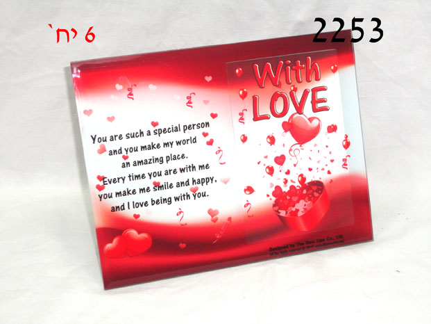 מסגרת לתמונה מזכוכית WITH LOVE+הקדשה 22X17 ס"מ/6