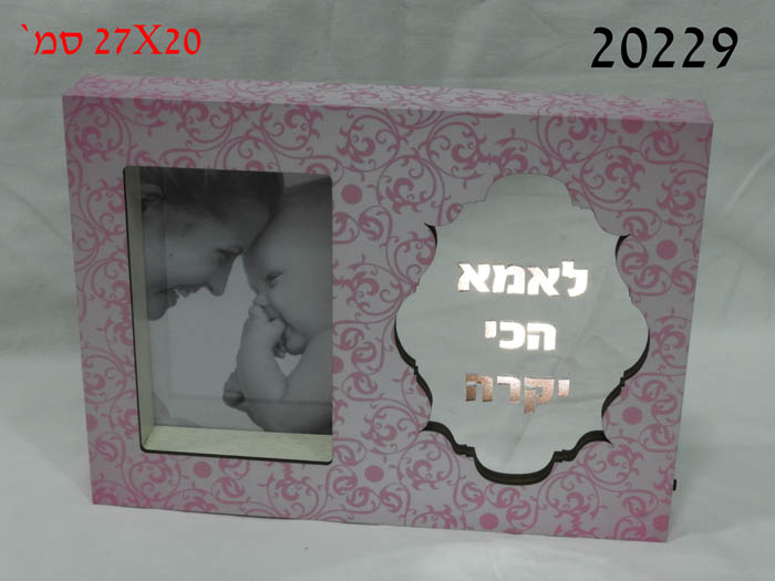מסגרת לתמונה מעץ+מראה+תאורה לאמא הכי יקרה 27X20