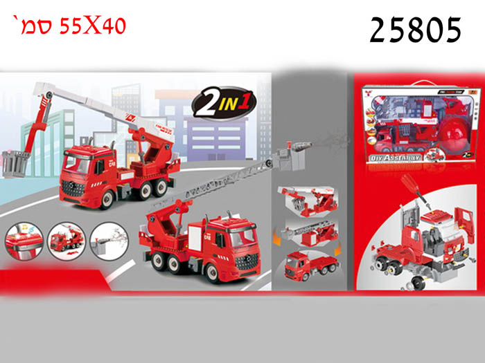 משאית אדומה+כלי עבודה להרכבה 2ב-1+אור וקול 55X40
