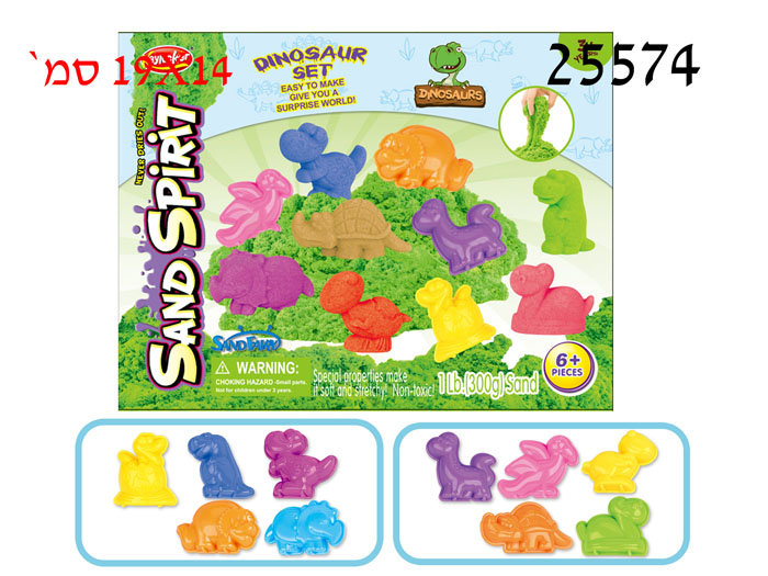 סט חול קינטי 6 חלקים דינוזאור 300 גרם 19X14 ס"מ
