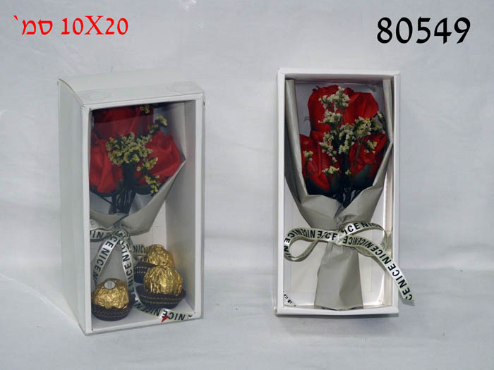 סידור פרחי סבון אדום בק.מתנה 10X20 ס"מ