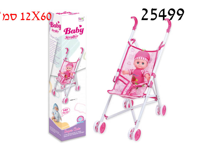 עגלה ורודה עם הדפס ובובה בקופסה 12X60