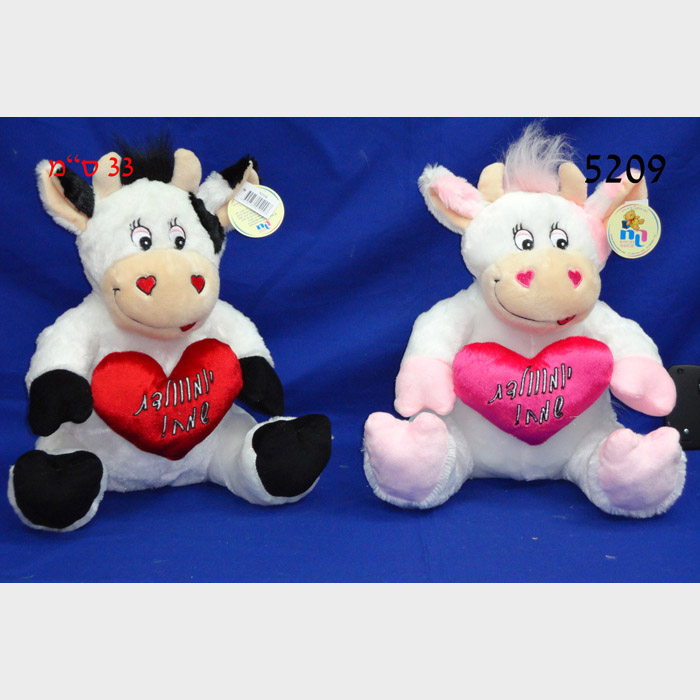 פרה לבנה/ורודה+לב יום הולדת שמח 36 ס"מ