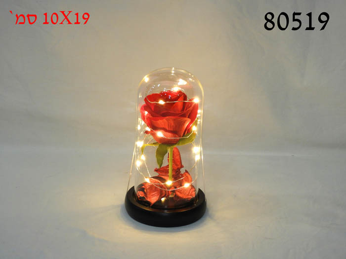 פרח בפעמון זכוכית+תאורה בסיס שחור 10X19 ס"מ