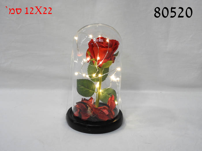 פרח בפעמון זכוכית+תאורה בסיס שחור 12X22 ס"מ