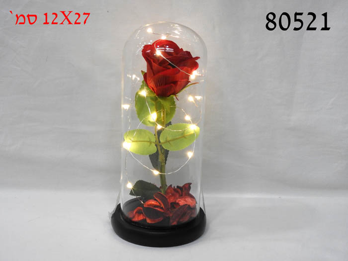 פרח בפעמון זכוכית+תאורה בסיס שחור 12X27 ס"מ