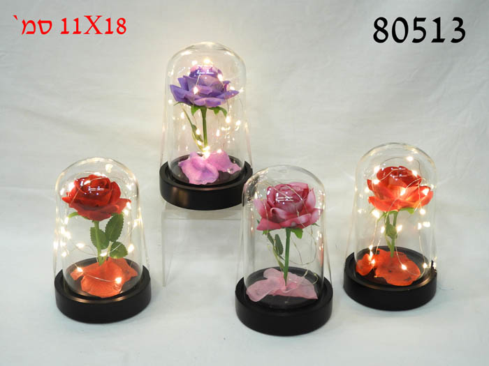 פרח בפעמון זכוכית ב-4 צבעים+תאורה ב.שחור 11X18