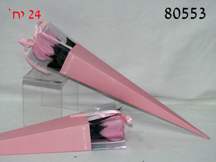 פרח סבון ורוד בודד באריזת קונוס מהודרת/16