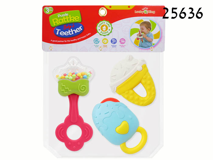 רעשן+נשכן לתינוק דגם כוכב בשקית 3 חלקים