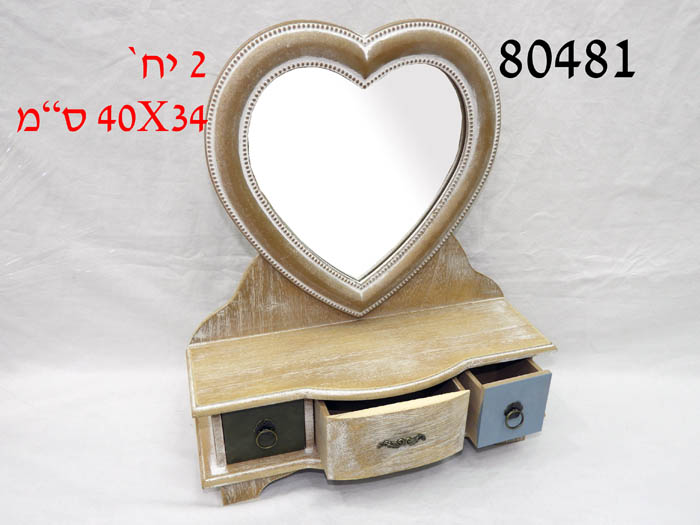 שידת עץ מראה+מגירות בצבע עתיק 40X34 ס"מ/2