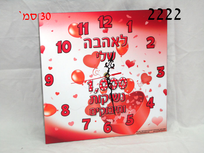 שעון עץ לקיר לאהבה+הקדשה 30X30 ס"מ