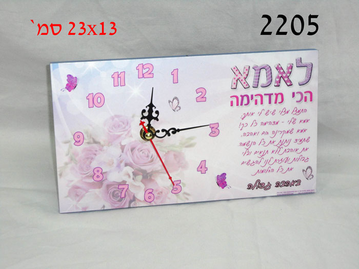 שעון עץ מלבני לאמא+הקדשה 23X13 ס"מ