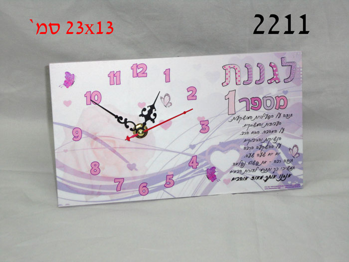 שעון עץ מלבני לגננת+הקדשה 23X13 ס"מ