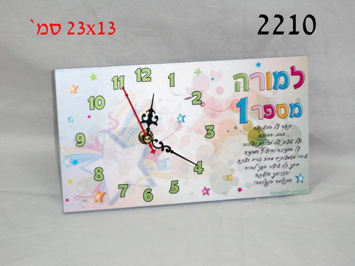 שעון עץ מלבני למורה+הקדשה 23X13 ס"מ
