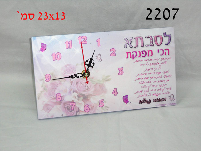 שעון עץ מלבני לסבתא+הקדשה 23X13 ס"מ